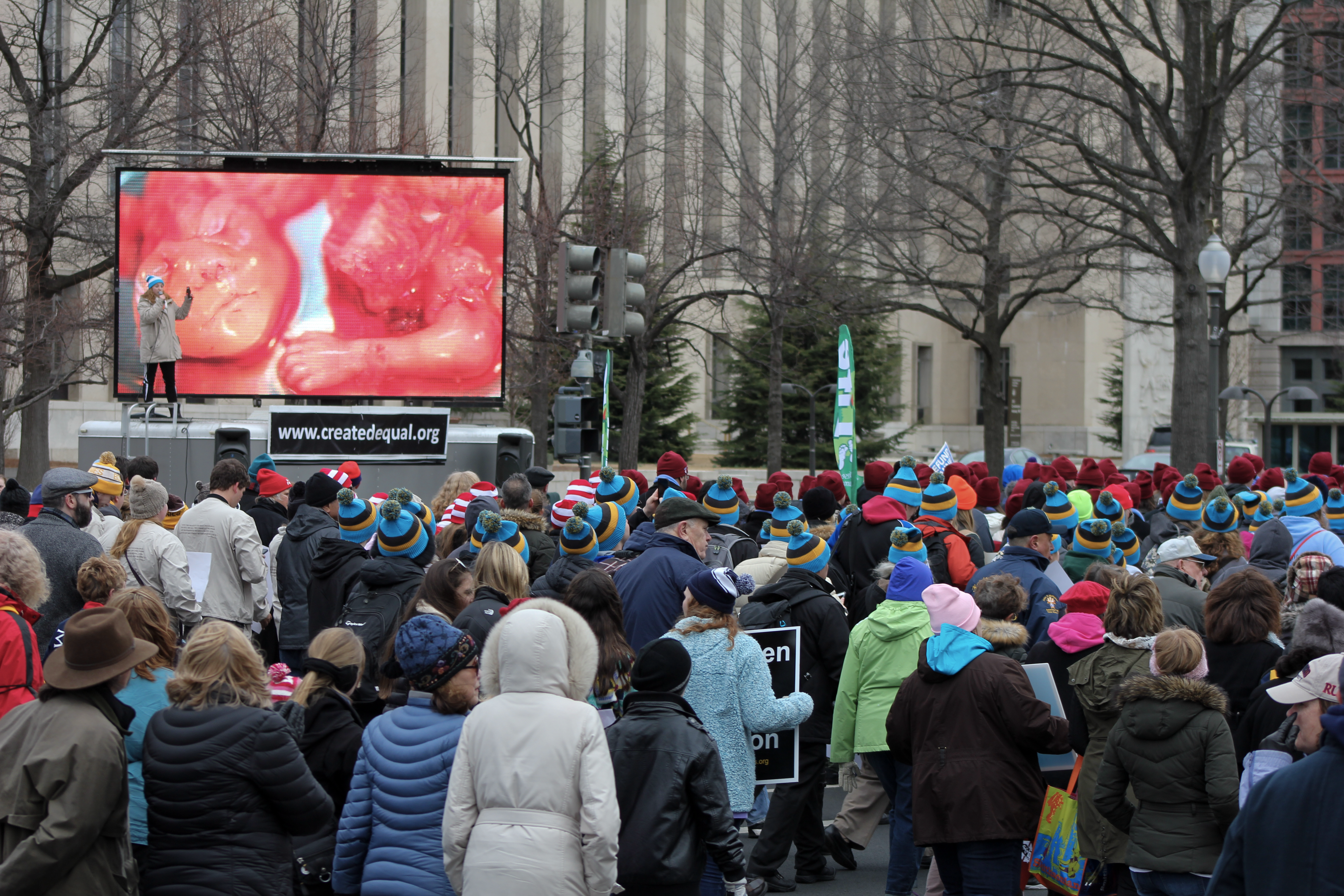 Created Equal’s JumboTron TV is cutting-edge technology that allows the victims of abortion to be shown to large crowds in video format.